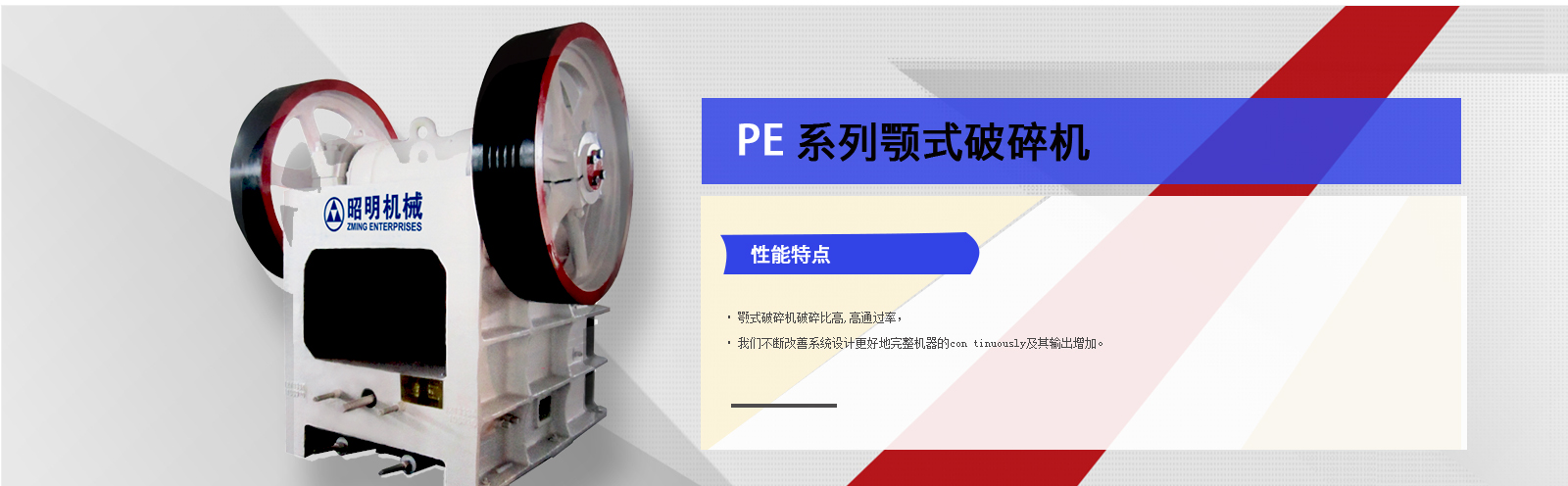我们的产品有圆锥机S240、S155、S75、ZM1400;颚机PE912;反击破PFQ1315、立...